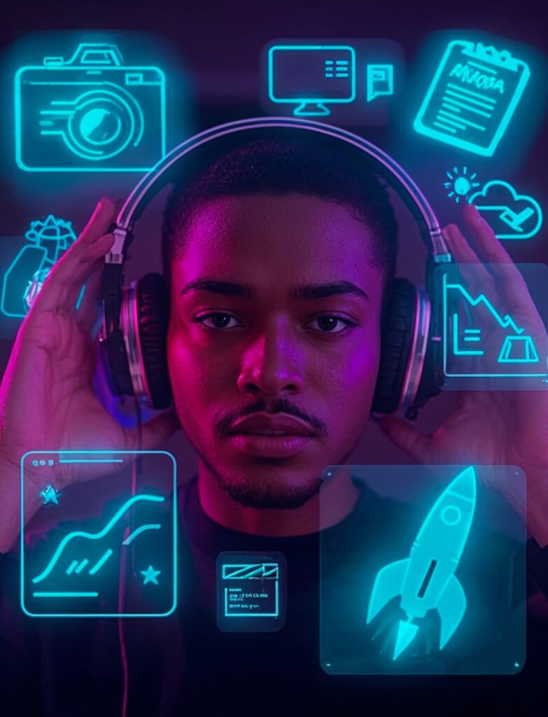 - Audiovisual → I produce reels, trailers, and full pieces with a cinematic mindset.